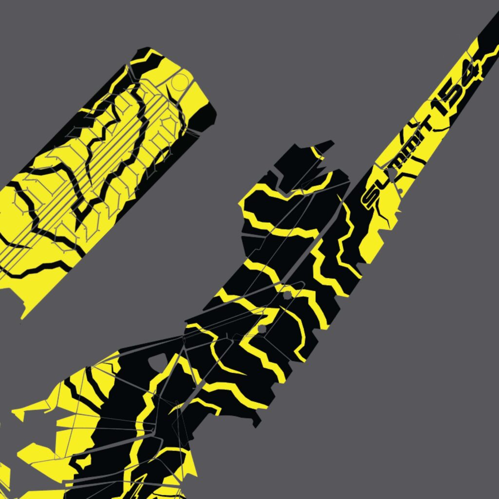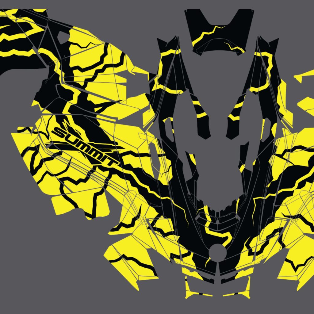 A custom graphic kit composed of electric patterns in bee colors.